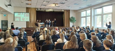 2024-11-25 atvira netradicinė muzikos pamoka „Muzikos instrumentų nuotykiai” 5a, 5b, 5c, 5d kl., bendradarbiaujant su Vilniaus muzikos mokykla "Lyra". Pamoką stebėjo progimnazijos ir Vilniaus miesto mokytojos.