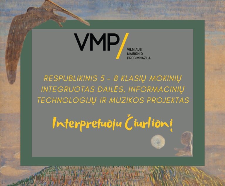 Respublikinis 5 - 8 klasių mokinių integruotas dailės, informacinių technologijų ir muzikos projektas "Interpretuoju Čiurlionį" vykdomas 2025 m. lapkričio - gruodžio mėn.