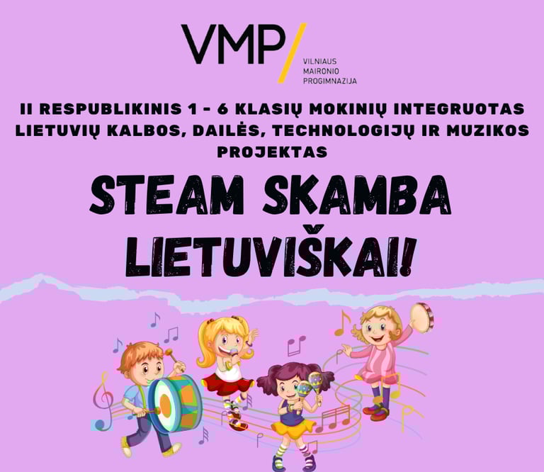 II respublikinis 1 - 6 klasių mokinių integruotas lietuvių kalbos, dailės, technologijų ir muzikos projektas "STEAM skamba lietuviškai!" vyko 2025 m. rugsėjo - spalio mėn.