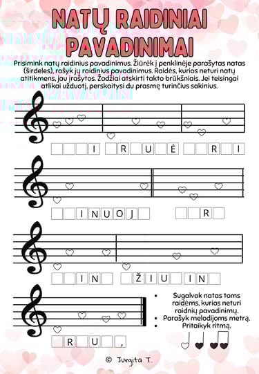 Mažiesiems galima tiesiog atspausdinti užduotėlę ir duoti atlikti. Greičiausiai ras jiems dar nežinomų muzikinių ženklų. Gal atsiras smalsus vaikas ir norės juos išsiaiškinti?