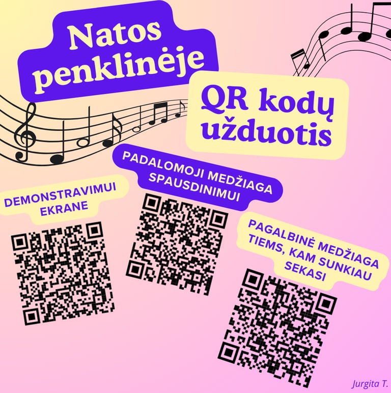 QR kodų užduotėlės, skirtos įtvirtinti natų ritmines vertes